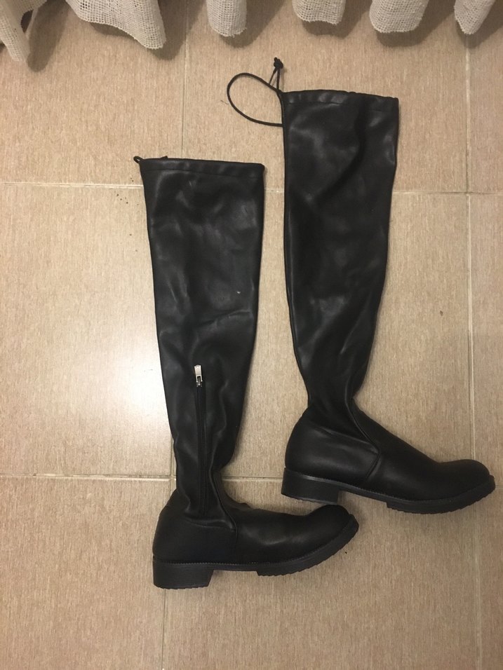 Kadın Siyah Deri Dizüstü Çizme Fermuarlı