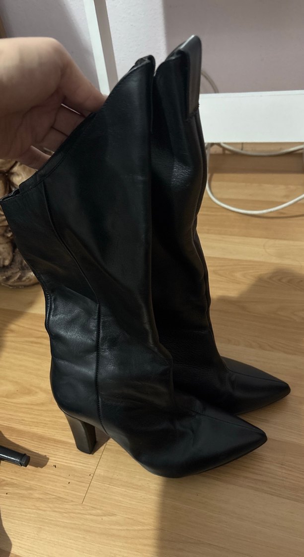 Kadın Siyah Deri Dizüstü Çizmeler