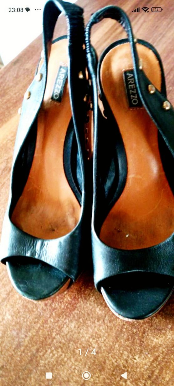 AREZZO markalı, tokalı siyah deri kadın dolgu topuklu ayakkabılar. Klasik ve cesur bohem tarzda, romantik buluşmalar için uygun.