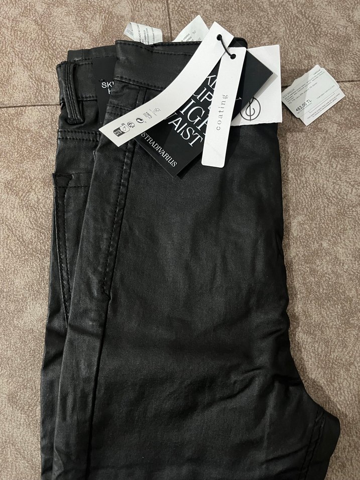 Siyah deri formda dar pantolon.Üstümde duruşunu beğenmediğim için satıyorum