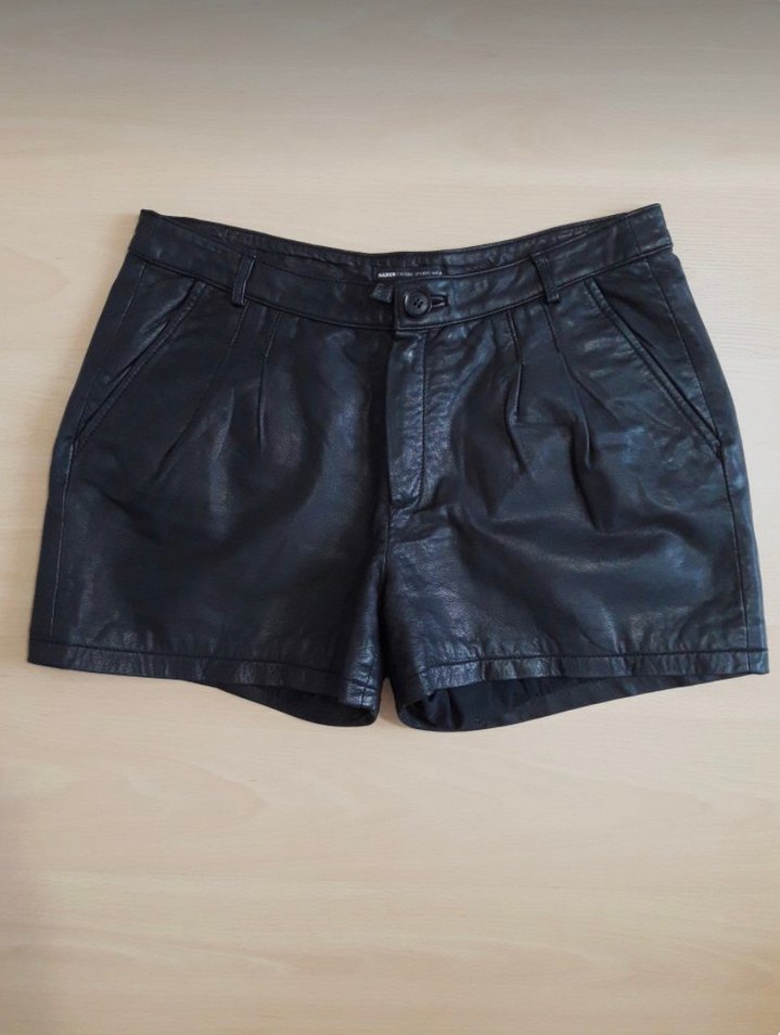 Kadın Siyah Deri Kemerli Mini Şort
