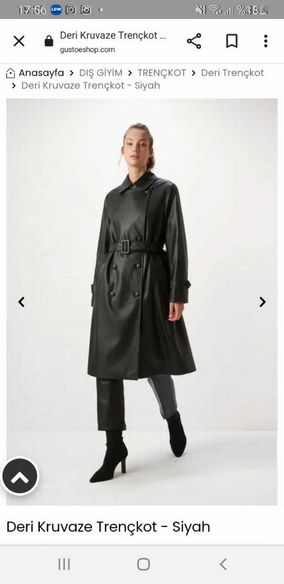 Siyah deri trençkot, uzun kollu ve kemerli, regular fit ile ofis ve sokak stiline uygun.