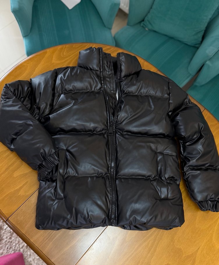 Fermuarlı, yüksek yakalı, siyah deri kışlık mont, rahat ve şık sokak stili sunar.