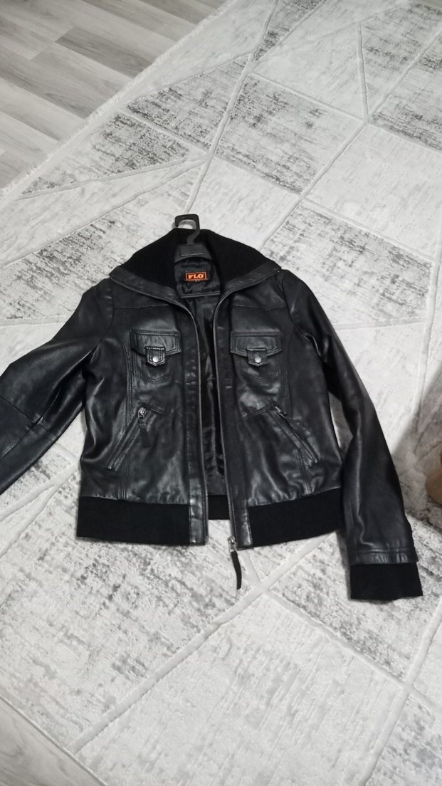 Kadın siyah deri ceket bir kaç sefer kullanıldı