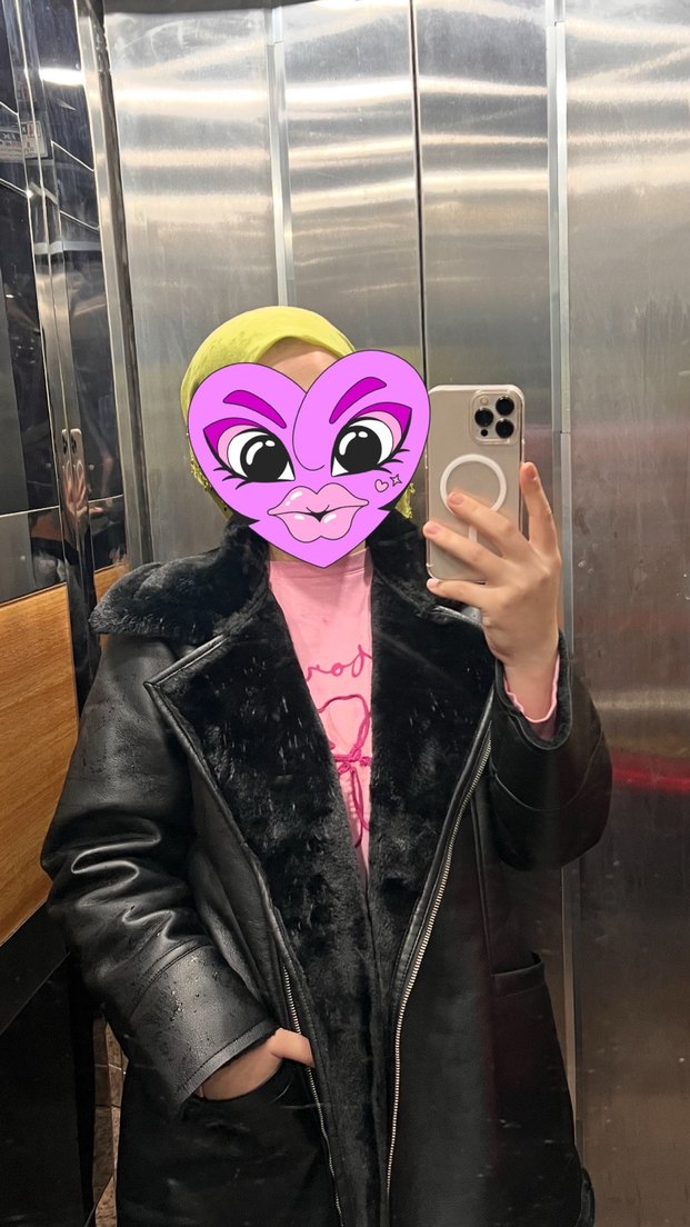 Bu kadın siyah deri ceket, uzun kollu ve kürk detaylı yakasıyla parti için uygun midi boyda ve dar kesimdir. Leopar desenli detaylar içerir.