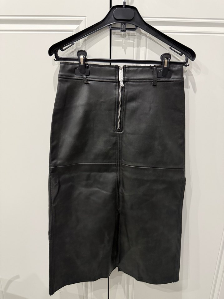 Kadın Siyah Deri Midi Etek