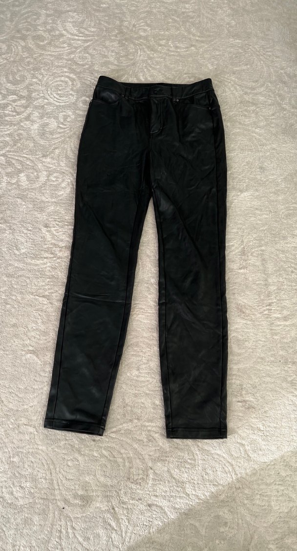 Kemerli, dar kesim siyah deri midi pantolon. Günlük rahat sokak stiline uygun, desensiz ve şık tasarım.