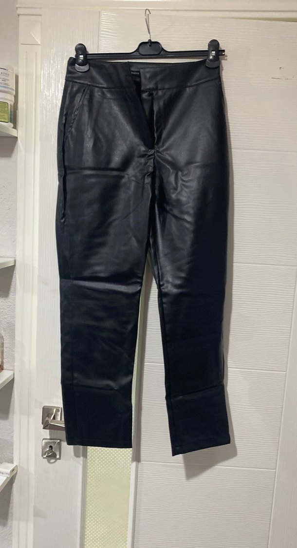 Kadın Siyah Deri Midi Pantolon