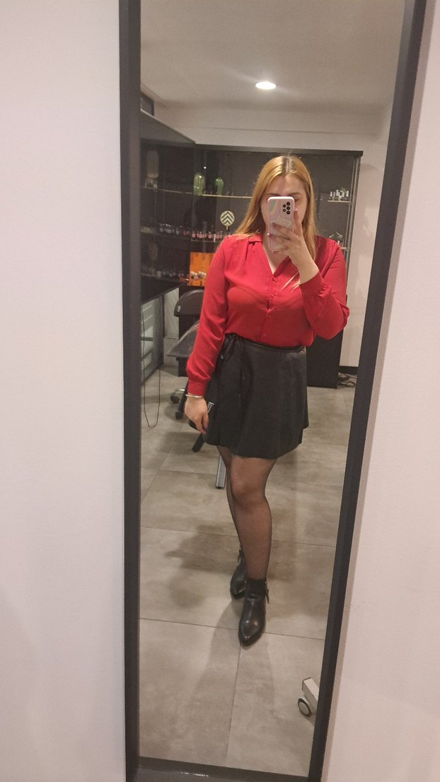 Siyah deri mini etek, rahat kesimi ve desensiz tasarımıyla ofis için cesur ve zahmetsiz şıklık sunar.