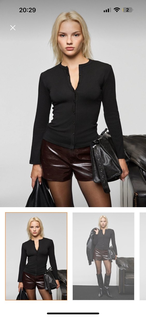 Siyah deri mini şort, rahat ve iddialı bir sokak stili sunar. Günlük kullanıma uygun, desen içermeyen ve vücuda oturan tasarımıyla şıklık sağlar.