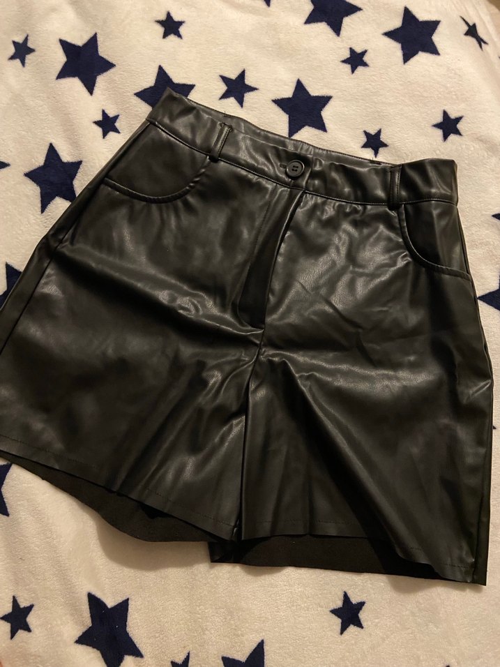 Kadınlar için siyah deri mini şort, dar kesim ve tokalı detaylarla cesur sokak stili sunar. Günlük kullanıma uygundur, Paris esintili.