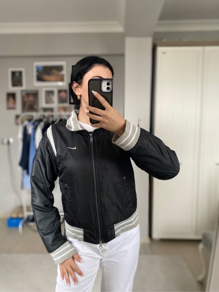 Vintage Nike ceket. Dar kesimdir. S-M uyumludur. Orijinaldir. Detaylar görsellerde verilmiştir.