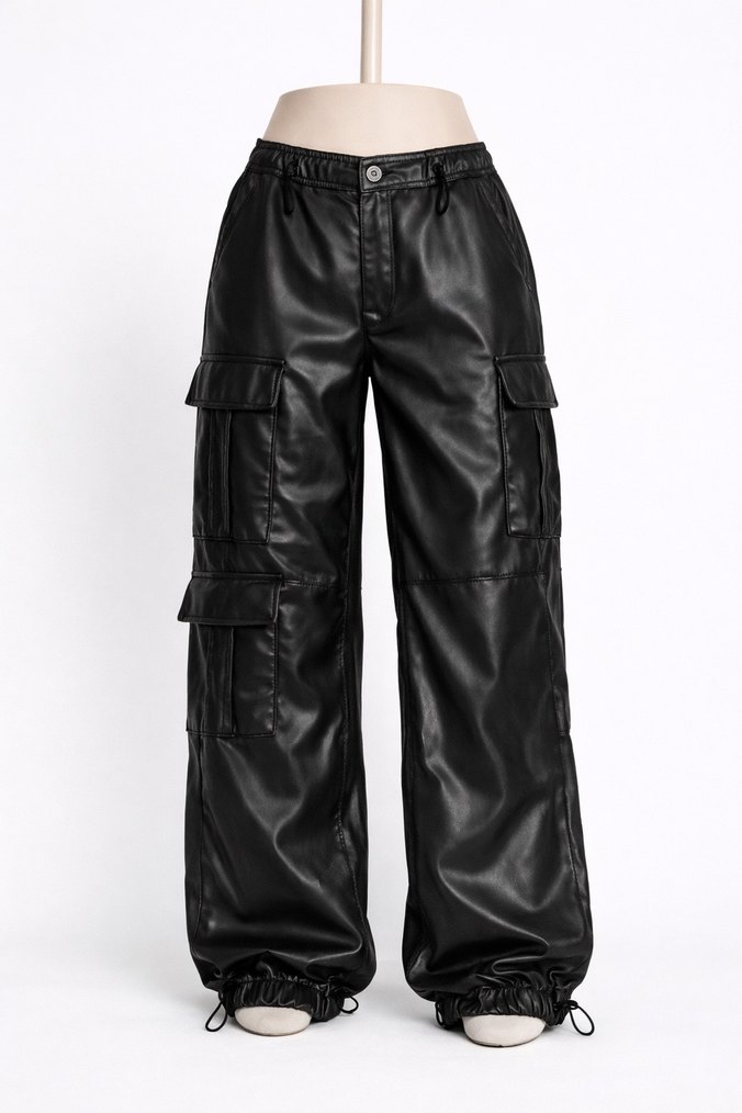 Siyah deri, kemerli ve bol paçalı kadın pantolon, günlük sokak modası için uygun, cep detaylı. Asırı guzel bir deri pantalon. Cok tarz duruyor her seyle cok iyi kombinleniyor Tertemizdir kusursuzdur