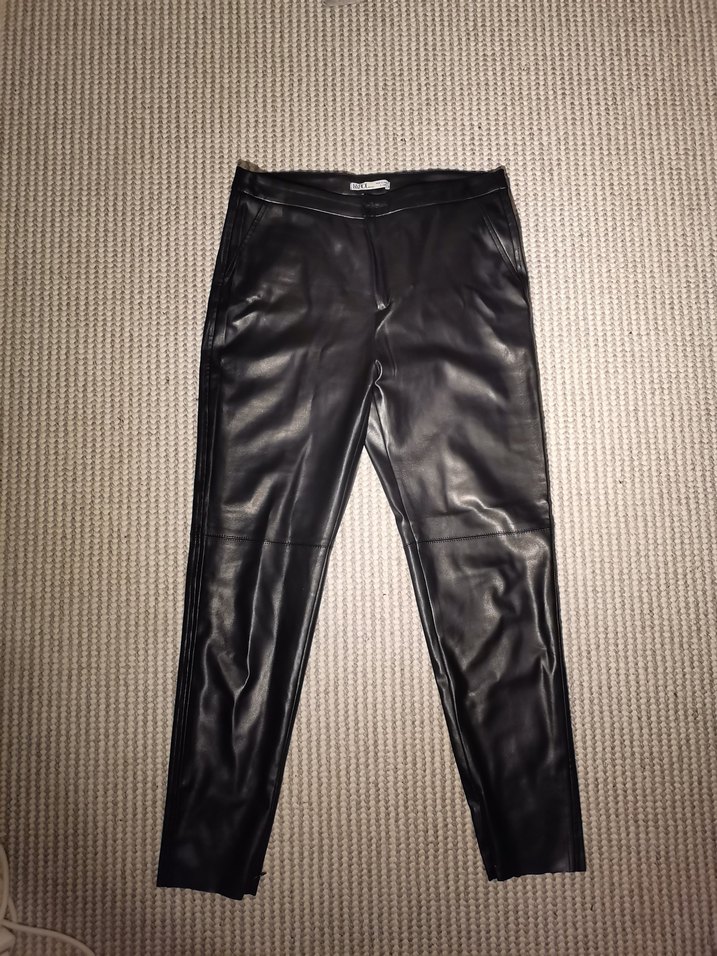 Siyah renkli deri pantolon. Fermuarlı, baya sıcak tutuyor içi kumaş gibi olduğu için, paçaları da fermuarlıdır. Cebi yok ve paçaları içe doğru dikişli değil ama bir sorun teşkil etmiyor.