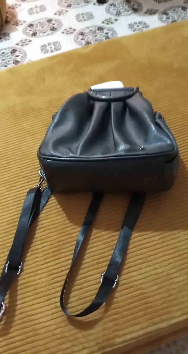 Kadınlar için siyah deri sırt çantası, tokalı kapanışa ve minimal tasarıma sahiptir. Günlük sokak tarzı için trend ve rahat bir seçenektir. çok şık spor şık gibi birsey