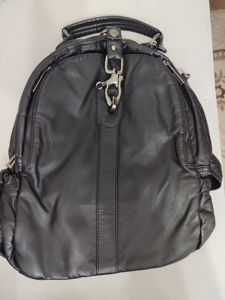 Bu siyah deri sırt çantası, tokalı kapama ve biker tarzıyla sokak stiline uygun, günlük kullanıma ideal. Desensiz ve şık tasarıma sahip.marka Lebina