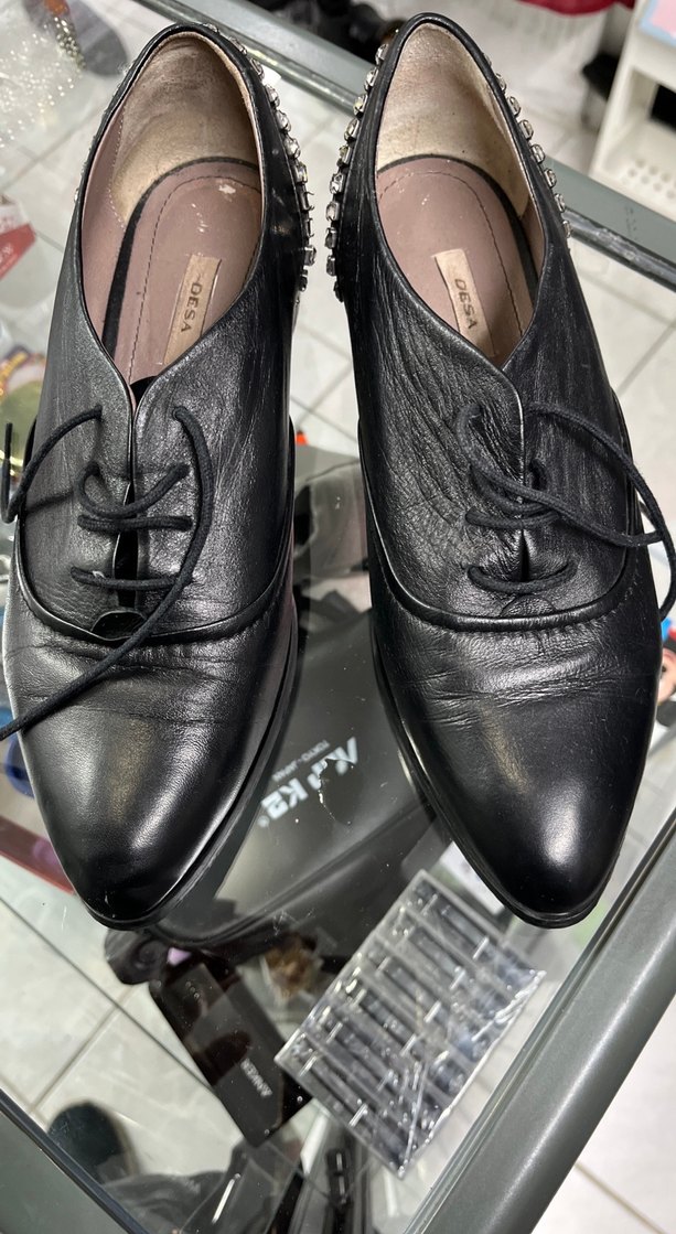 Siyah deri kadın klasik ayakkabılar, stiletto topuklu ve tokalı detaylı, ofis ve goth tarzı için uygun. ✨
