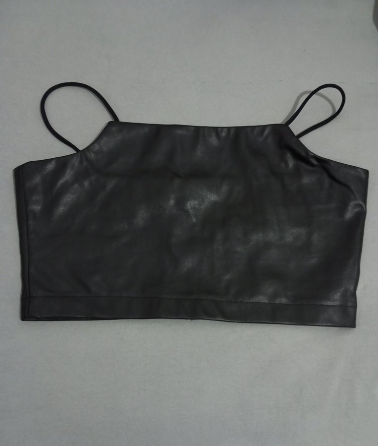 Kadın Siyah Deri Strappy Bustier