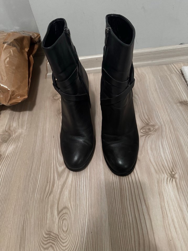 Kadın Siyah Deri Tokalı Blok Topuk Bot