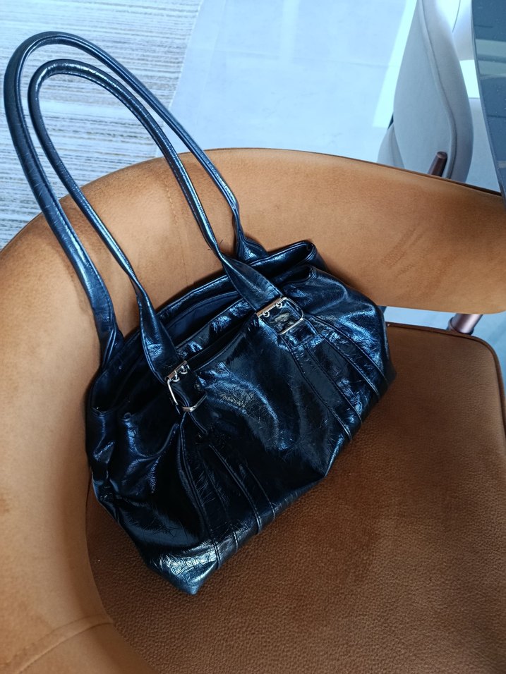 Kadın Siyah Deri Tokalı Çanta