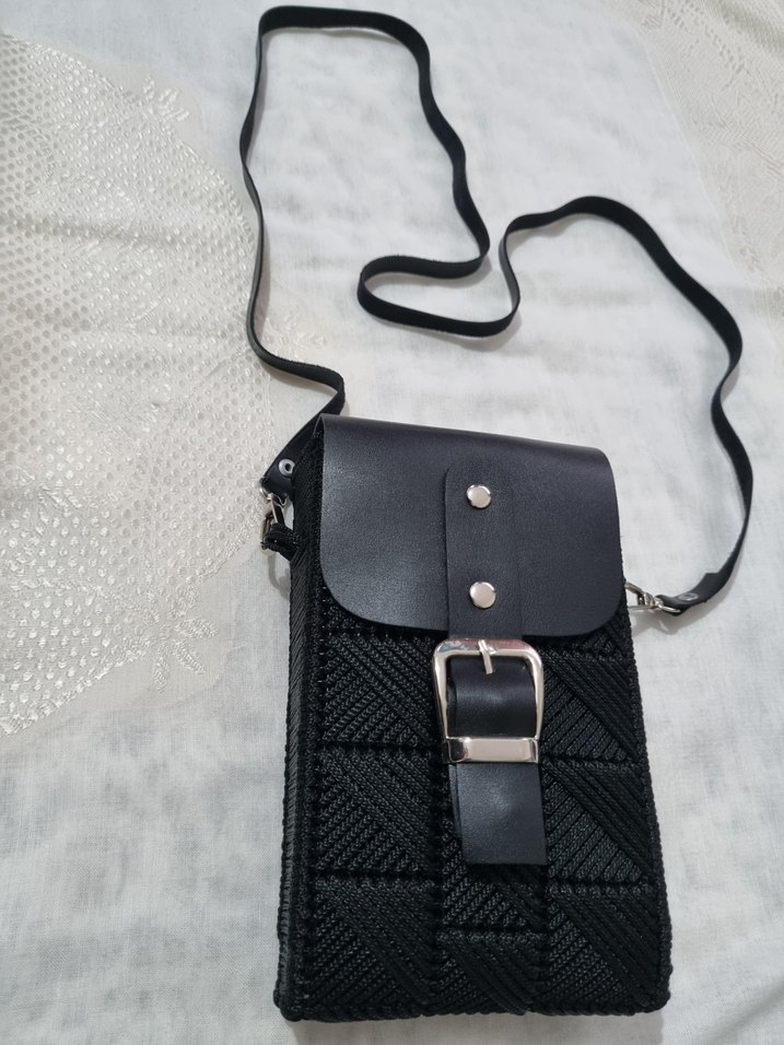 Siyah deri tokalı kapak ve dokulu gövdesiyle kadın çapraz çanta, günlük kullanım için minimalist ve sokak tarzına uygun.