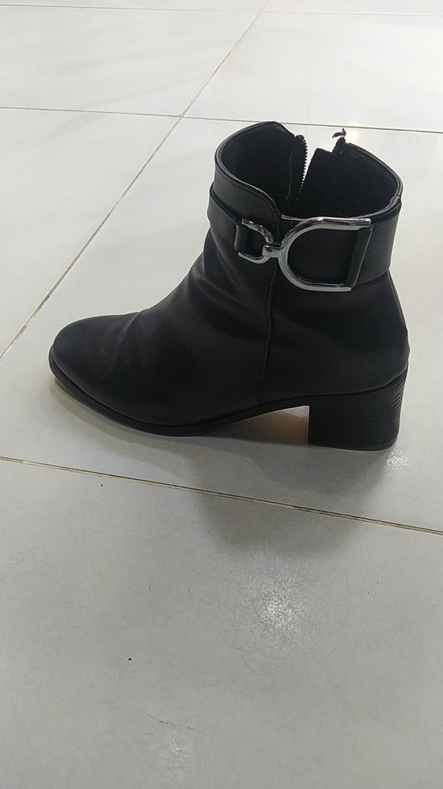 Kadın Siyah Deri Tokalı Topuklu Bot