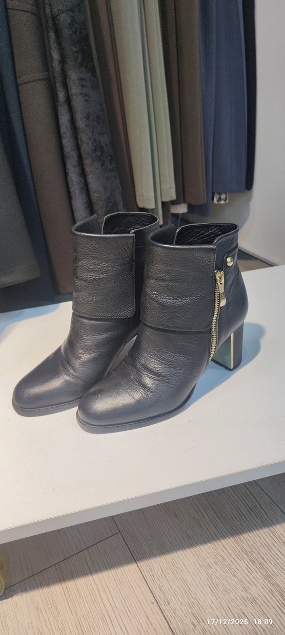 Siyah deri kadın botlar, blok topuk ve tokalı detaylarıyla günlük kullanıma uygun modern ve Paris tarzı şıklık sunar.