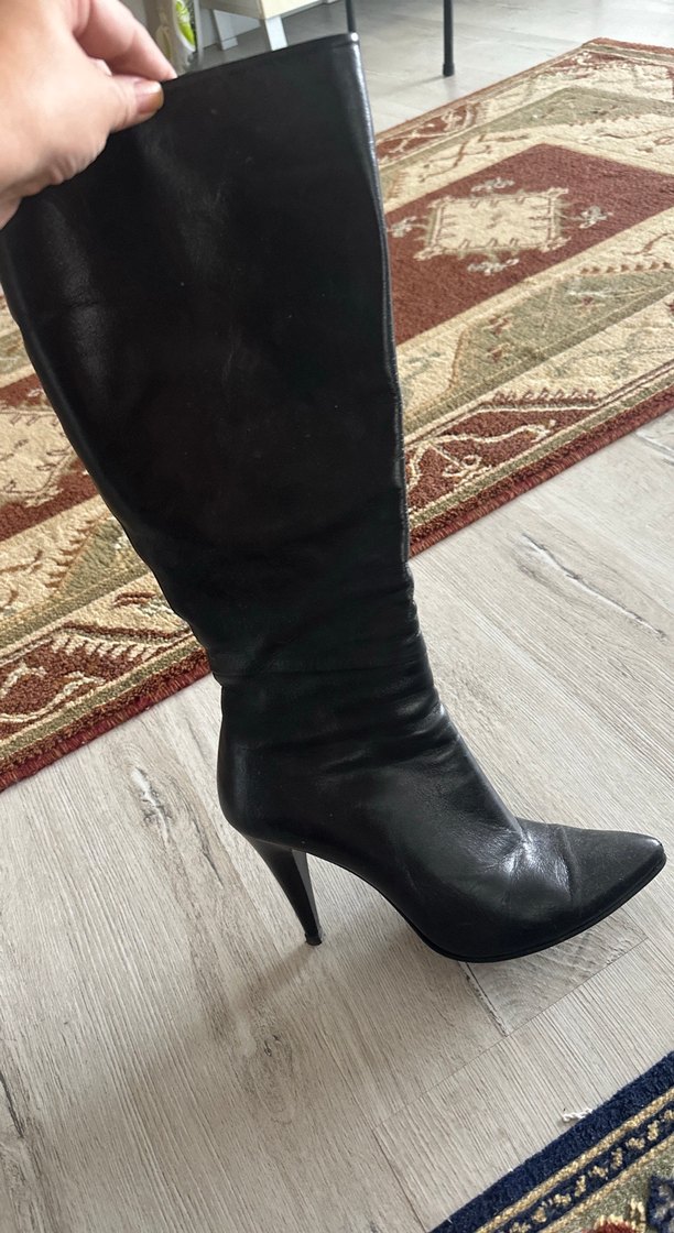 Kadın Siyah Deri Topuklu Çizme