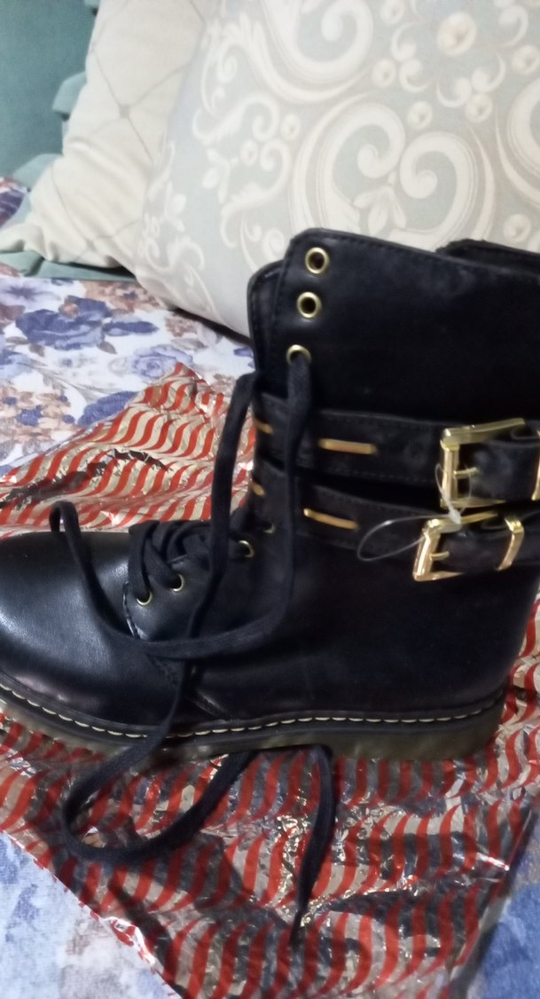 Siyah deri, tokalı ve yüksek topuklu kadın botu. Goth ve grunge punk tarzıyla günlük kullanıma uygun rock punk havası katıyor.