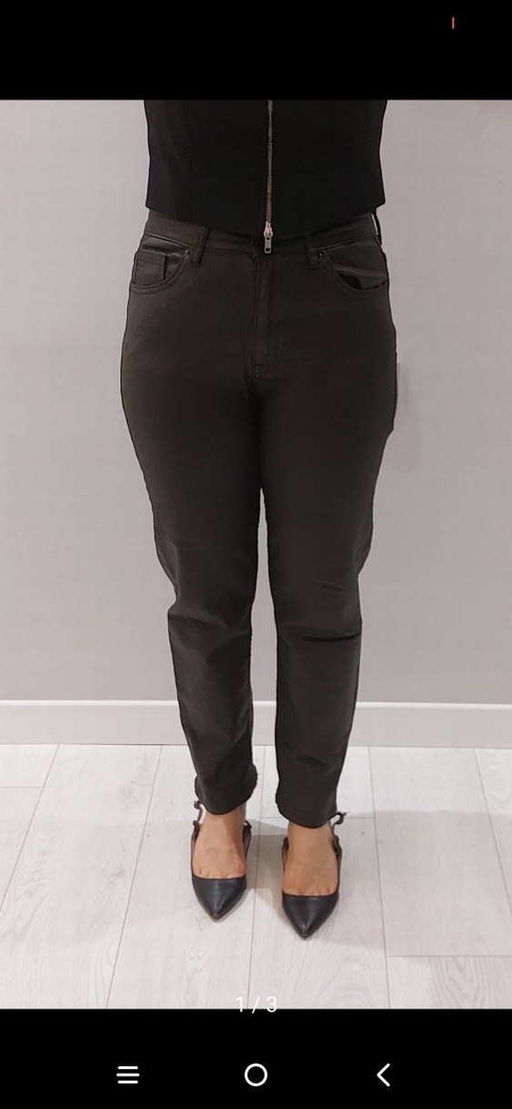 Kadınlar için koyu kahverengi deri, normal kesim ve midi boy pantolon, günlük kullanım için sade ve desensiz tasarım sunar.