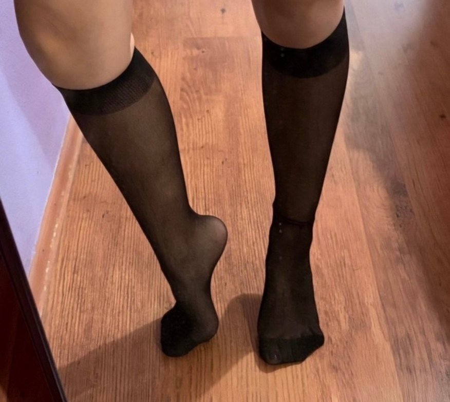 Siyah, dizüstü, ince topuklu görünümlü, pürüzsüz ve esnek kumaştan yapılmış çoraplar. Ofis için şık ve cesur bir tarz sunar.