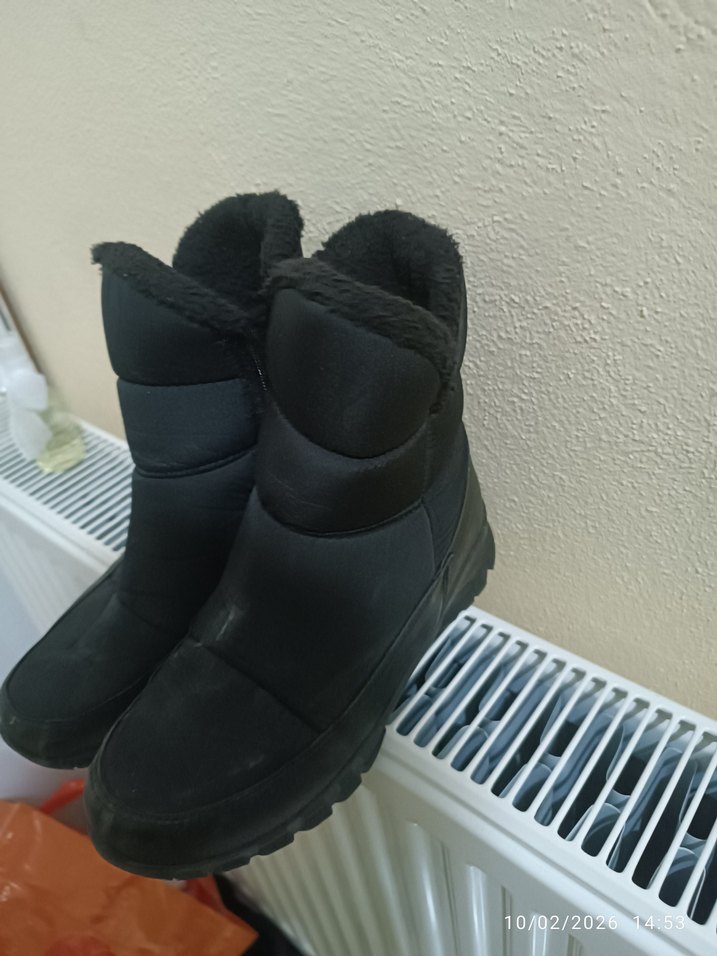 Kadınlar için siyah dolgu topuklu botlar, kauçuk malzeme ve cırt cırtlı kapanışa sahip. Rahat iç yapısıyla trend sokak stiline uygun, günlük kullanım için ideal.