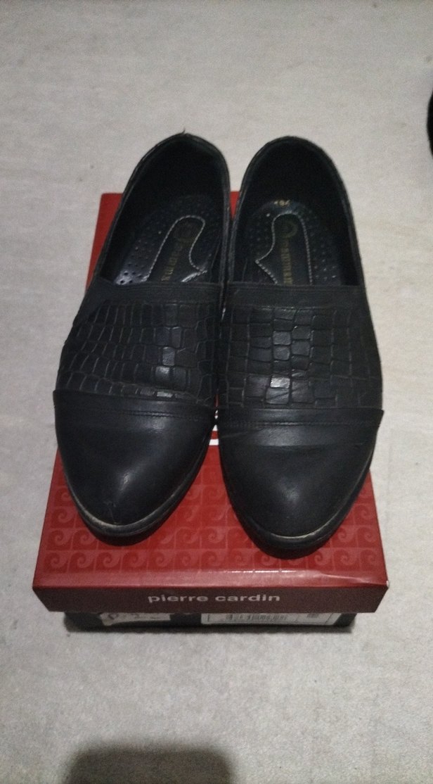 Kauçuk malzemeden yapılmış, dolgu topuklu ve pileli tasarıma sahip siyah klasik ayakkabı. Günlük kullanım için uygundur. Marka: Pierre Cardin.