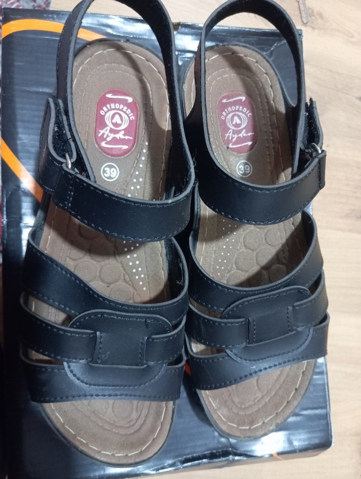Siyah dolgu topuklu, tokalı kauçuk kadın sandalet. Günlük kullanıma uygun, trend sokak stiline hitap eder. Beden 39.