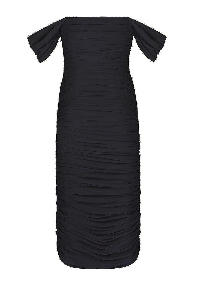 Kadın Siyah Drapeli Düşük Omuzlu Abiye