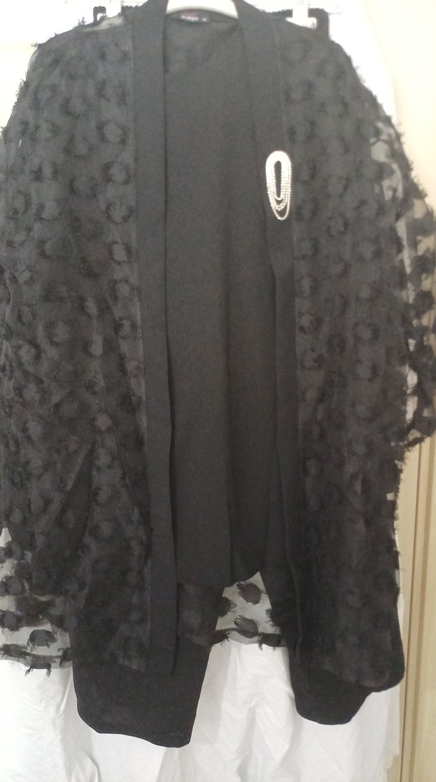 Kadınlar için siyah, drapeli tasarıma sahip koyu sentetik kumaftan yapılmıştır. Gotik ve avangart tarzı yansıtır, dekoratif zincir detayı bulunur.