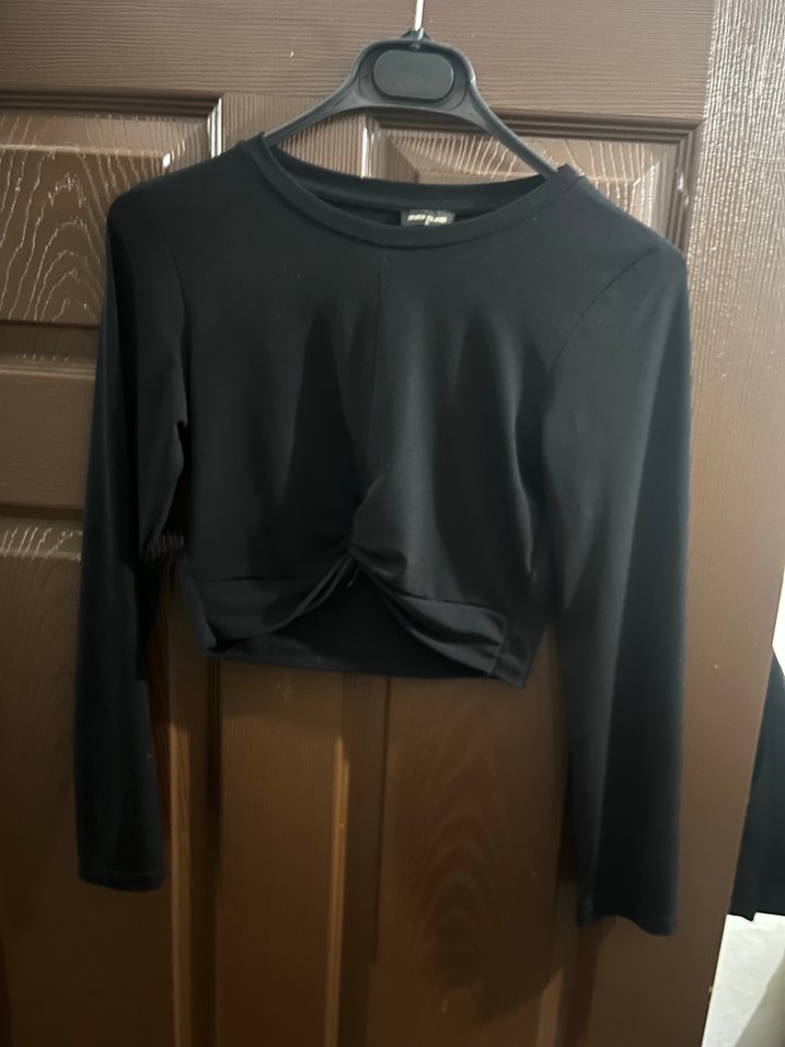 Uzun kollu, bisiklet yaka ve drapeli detaylı siyah mini bluz. Sentetik kumaştan üretilmiş, günlük şık sokak stili için uygundur. ✨