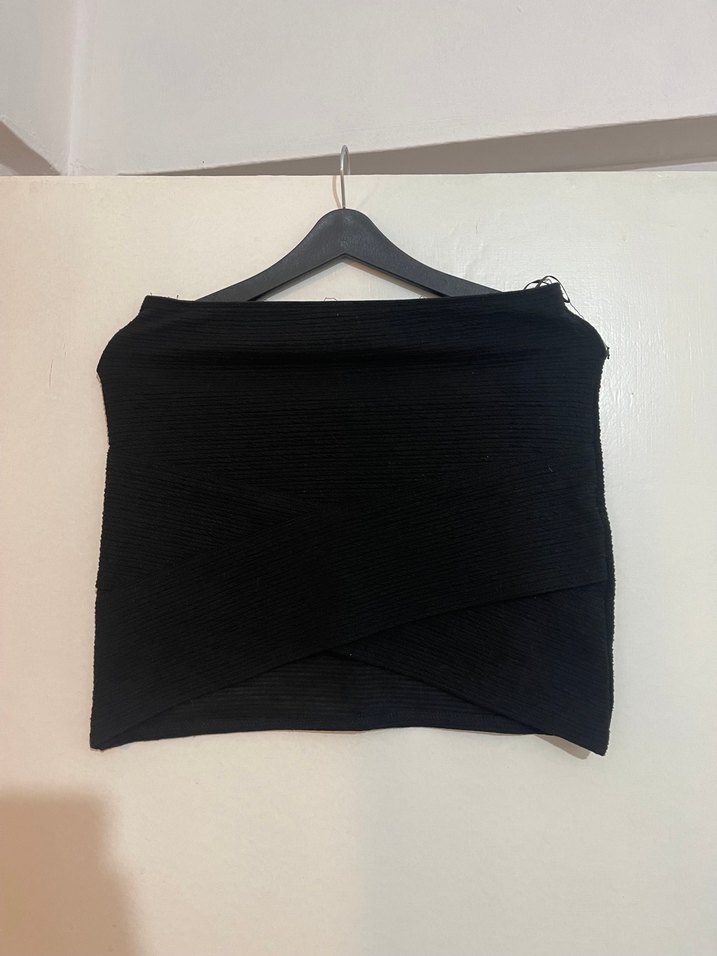 Siyah drapeli tasarıma sahip, vücuda oturan mini etek, yumuşak sentetik kumaştan üretilmiştir. Sokak modası ve günlük kullanıma uygundur.