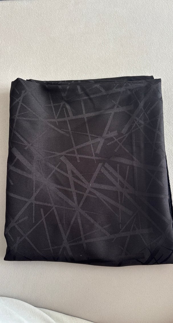 Kadınlar için drapeli tasarıma sahip siyah şal, geometrik desenlerle sade ve modern bir stil sunar. Yumuşak sentetik kumaştan üretilmiştir.