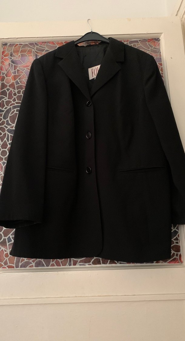 Kadın siyah düğmeli blazer, yakası kesik, normal kesim ve uzun kolludur. Ofis kullanımı için uygun, ipeksi dokulu midi boyda bir cekettir.