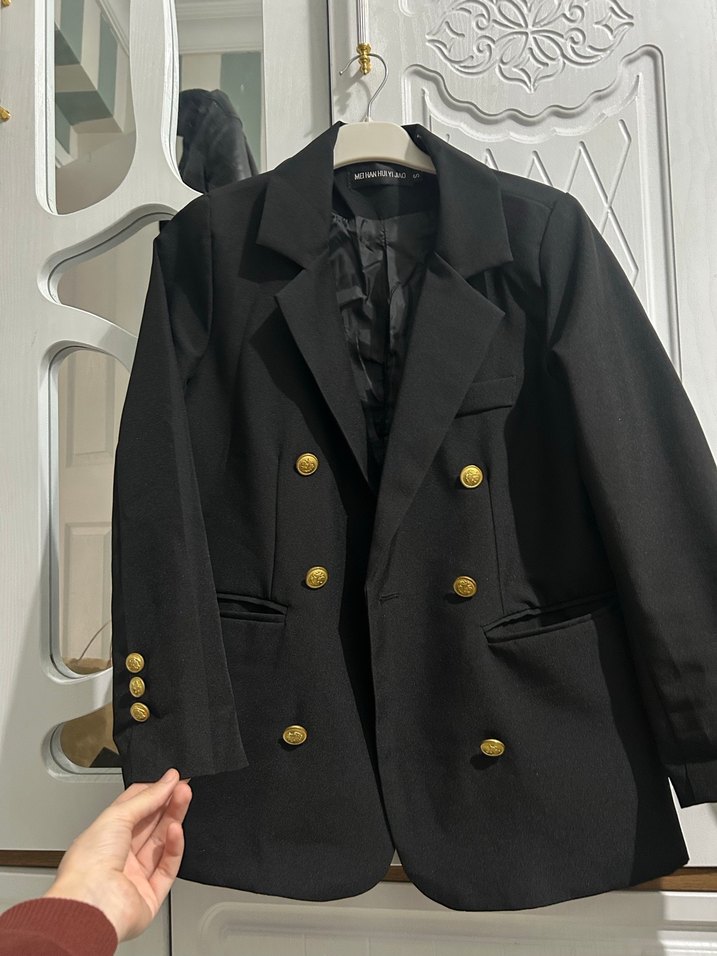 Kadın Siyah Düğmeli Midi Blazer Ceket