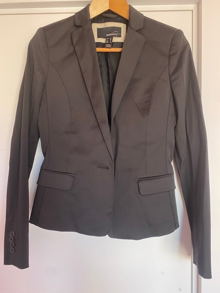 Kadınlar için düğmeli, kesimli yaka ve uzun kollu siyah ofis blazeri. Normal midi boyda, klasik ve şık bir görünüm sunar. ✨