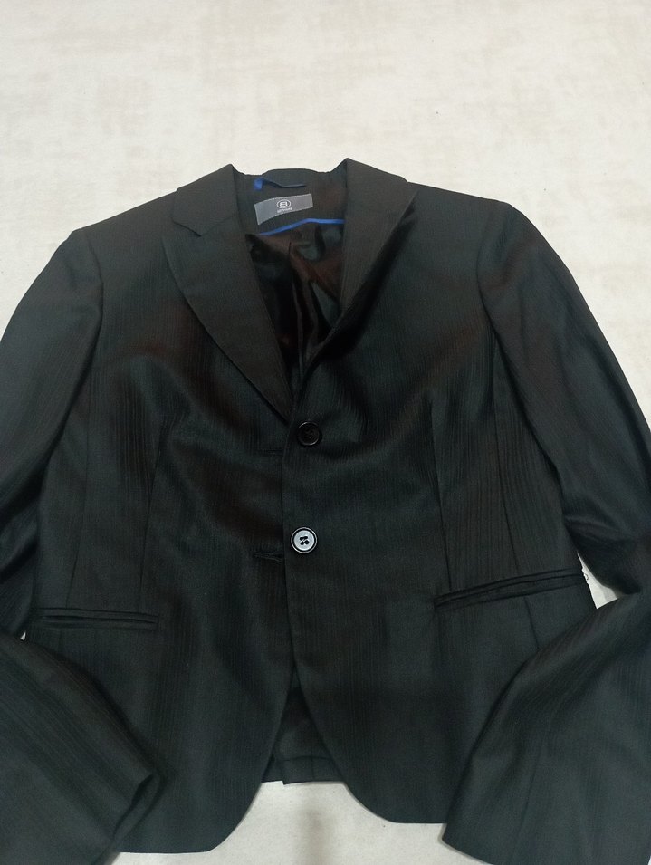 Siyah kadın takım ceketi, düğmeli, uzun kollu ve normal kesim. Ofis kullanımı için uygundur. ️