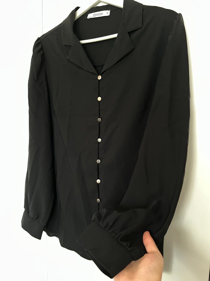 Kadın Siyah Düğmeli Uzun Kollu Gömlek