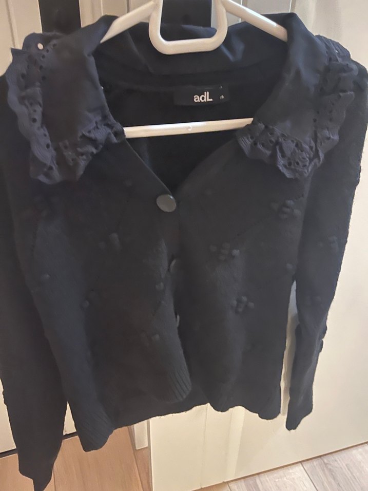 Siyah renkli, düğmeli, yakalı, uzun kollu ve midi boyda triko hırka. Geniş kesimi ve gotik tarzıyla dikkat çekiyor.
