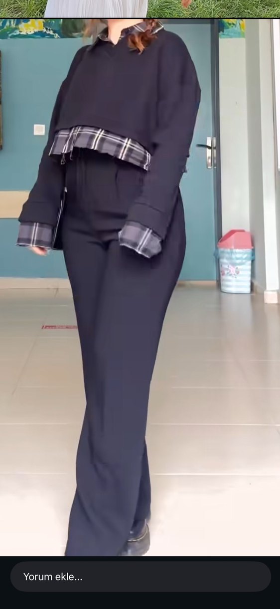 Kadın Siyah ekose detaylı zara sweatshirt