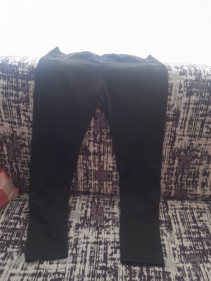 Kadınlar için elastik bel bantlı, midi boy, siyah kumaş pantolon. Rahat sokak stili ve günlük kullanım için uygundur.