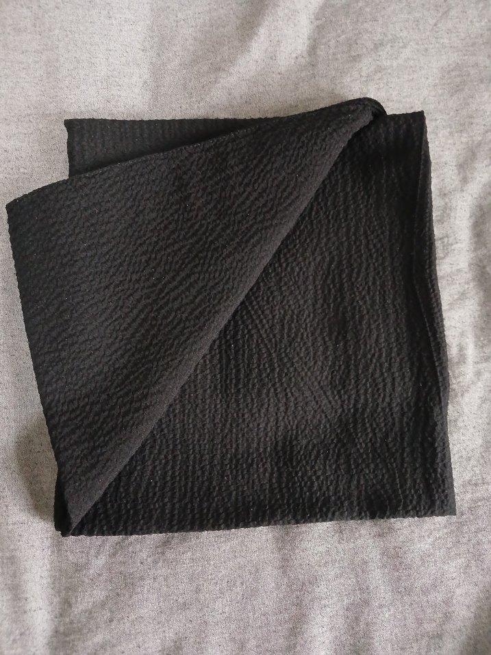 siyah eşarp. defosu yoktur. yazlık hafif bir kumaştır.