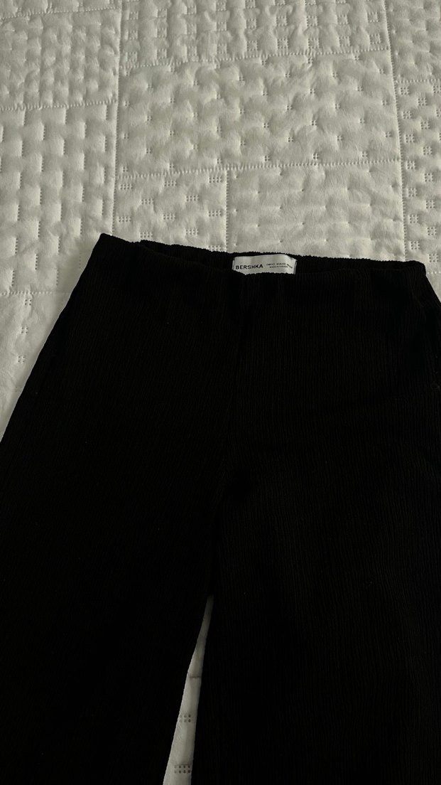 Kadınlar için siyah pantolon, regular fit ve pileli tasarıma sahiptir. Midi boyda, minimalist ve normcore tarzındadır, ofis kullanımı için uygundur.