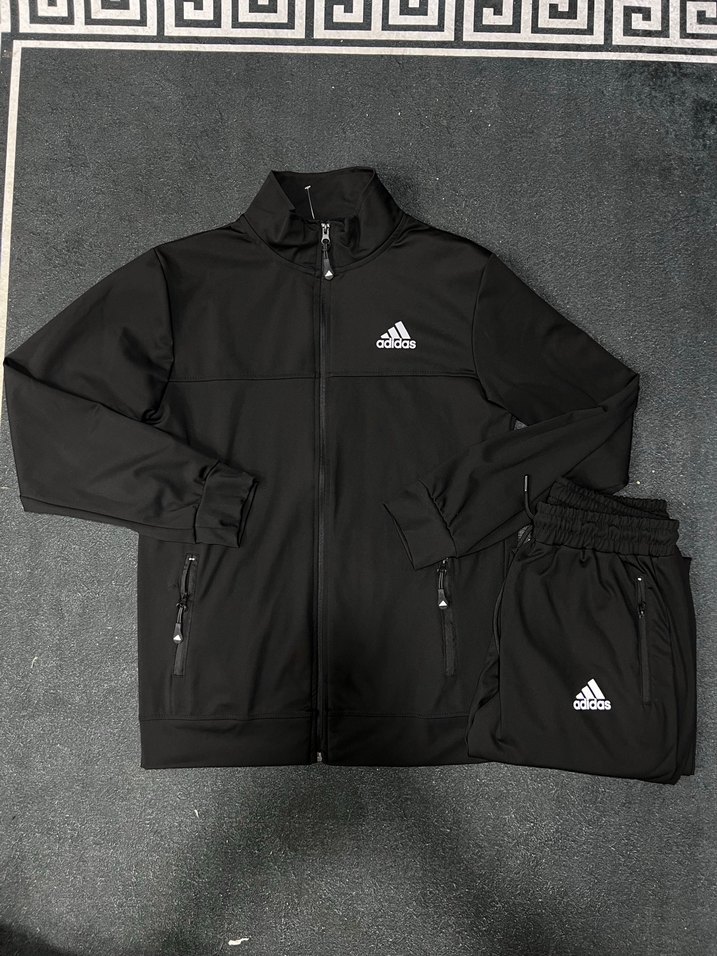 Kadınlar için siyah, fermuarlı, uzun kollu, regular fit eşofman takımı. Orta boy, yumuşak ve sıcak kumaştan, dış mekan kullanımı için uygun.